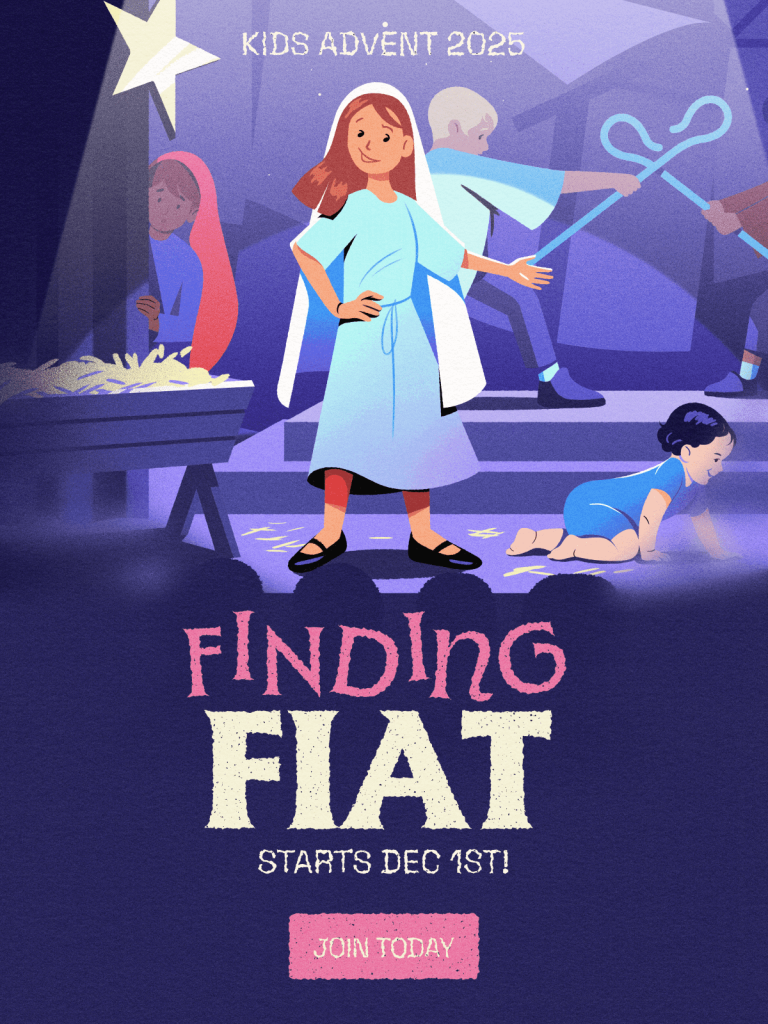 If you’re hoping to spend more time in prayer with your family this Advent, you don’t want to miss our incredible Kids Advent 2025 challenge: Finding Fiat. We’ll journey with young Grace Brumley, who some of you may know from our popular kids’ series Saints Alive, while she prepares for the role of Mary in her school’s nativity play! The Finding Fiat waitlist in now available for parish pages.